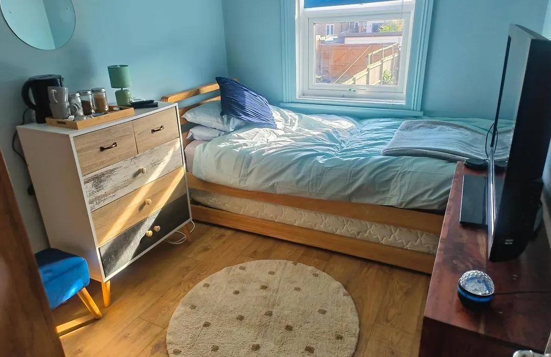 ベッドル-ム1室のComfortable Single Room チェルトナムはBrennen & Brownから歩いて5分以内の場所にあります. ビジネスとレジャ-の両方の目的でWi-Fiを利用できます.